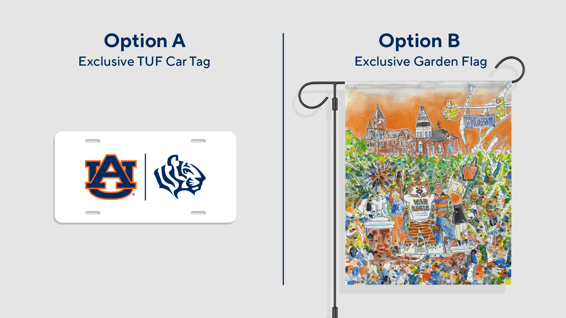 As we approach the conclusion of the 2024-2025 athletic season, we are looking forward to another exciting 2025-2026 athletic season! As a Tigers Unlimited member, we would like to offer you the chance to select your membership gift for the 2025-2026 membership year. Please submit your selection below, not later than May 20, 2025. If no selection is submitted, you will receive the Tigers Unlimited Car Tag as your gift.